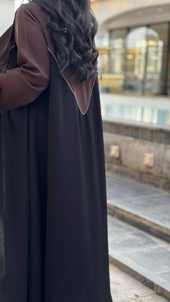 عباية صيفية نص كلوش مع طرحه بطرف بني .