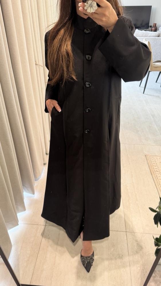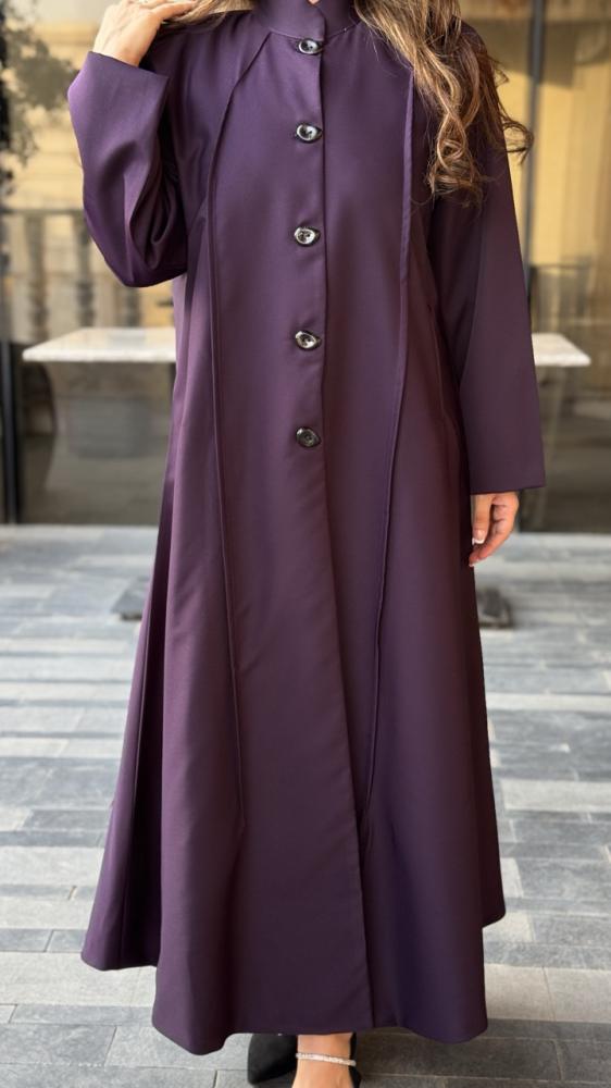 بليزر رسمي مبطن القماش : تفته ناعم مقلوب لون بنفسجي داكن أو الأسود . الوصف : عباية بليزر مبطن مع ياقة صغيرة وأزرار أمامية . جيوب . كتافات اسفنج ناعم ( لتجعل إطلالتك أكثر فخامة ) طرحة سادة من لون العباية