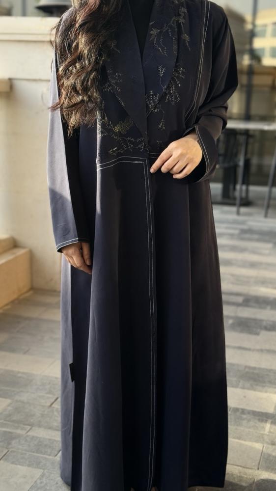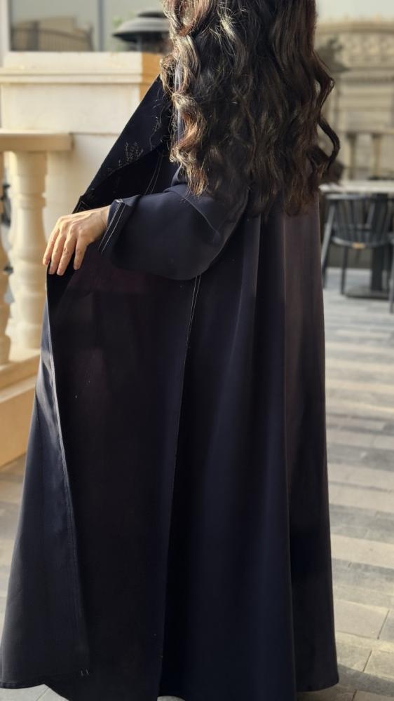 عباية صيفية القماش : كريب مغسول متوفرة بلونين ( أسود ، كحلي ) . الوصف : عباية نص كلوش قماش صيفي . مع تطريز خيط بالصدر طرحة كحلي أو أسود ( حسب لون العباية ) بطرف .